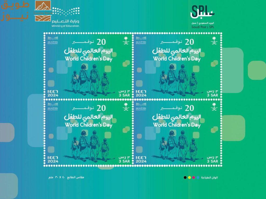 أصدرت مؤسسة البريد السعودي | سبل بالتعاون مع وزارة التعليم طابعاً بريدياً فئة 3 ريالات بمناسبة اليوم العالمي للطفل والذي يهدف إلى تسليط الضوء على حقوق الأطفال وتعزيز رفاهيتهم في جميع أنحاء العالم،