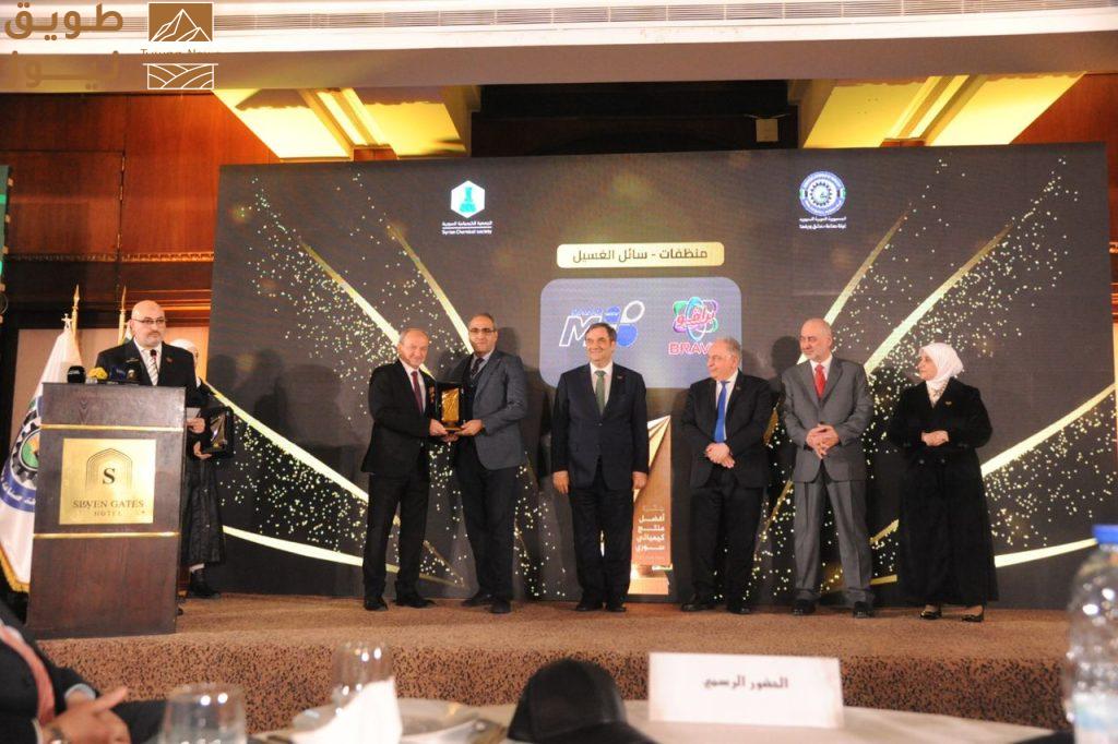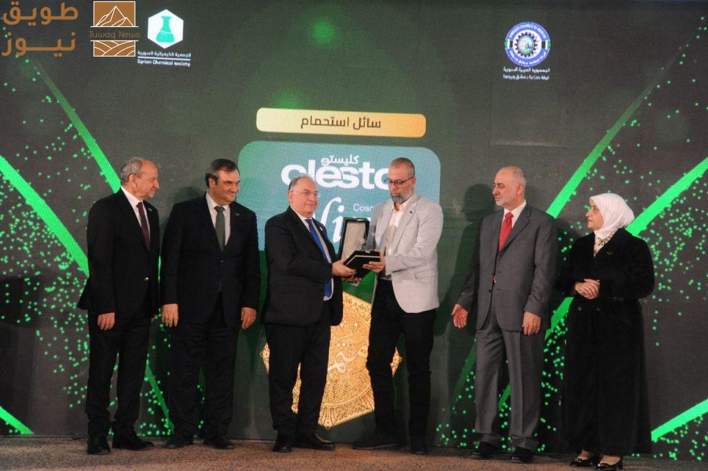 ، فيما مُنحت جائزة التميز إلى سائل الاستحمام «كليستو»، نظير تفوقه في التركيبة والالتزام بالمعايير العالمية المعتمدة، ما يعكس حرص المجموعة الدائم على الابتكار وتلبية تطلعات المستهلك.وشكّلت الدورة الأولى من جائزة «أفضل منتج كيميائي سوري لعام 2025» محطة مهمة في مسار دعم الصناعة الوطنية، حيث جاءت كمبادرة نوعية تحمل طابع الابتكار، وتشجع الإبداع المحلي، وتسهم في تعزيز انتشار المنتج السوري عربياً وعالمياً، وترفع من مكانة القطاع الصناعي الكيميائي السوري على الساحة الاقتصادية الدولية.وشهد حفل إعلان النتائج حضوراً وزارياً رسمياً، ومشاركة اقتصادية وصناعية بارزة، إلى جانب نخبة من الصناعيين والخبراء وممثلي الشركات العاملة في هذا القطاع، ما أضفى على الحدث أهمية خاصة، وأكد مكانته كمنصة داعمة للتنافس الإيجابي وتبادل الخبرات.