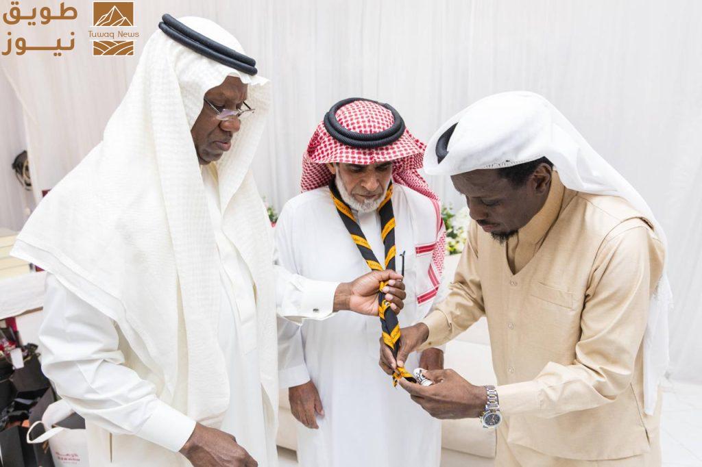 القنصل الادماوي يقلد منديل كشافة شباب مكة للهوساوي قاضي سقطي منصور وغميص