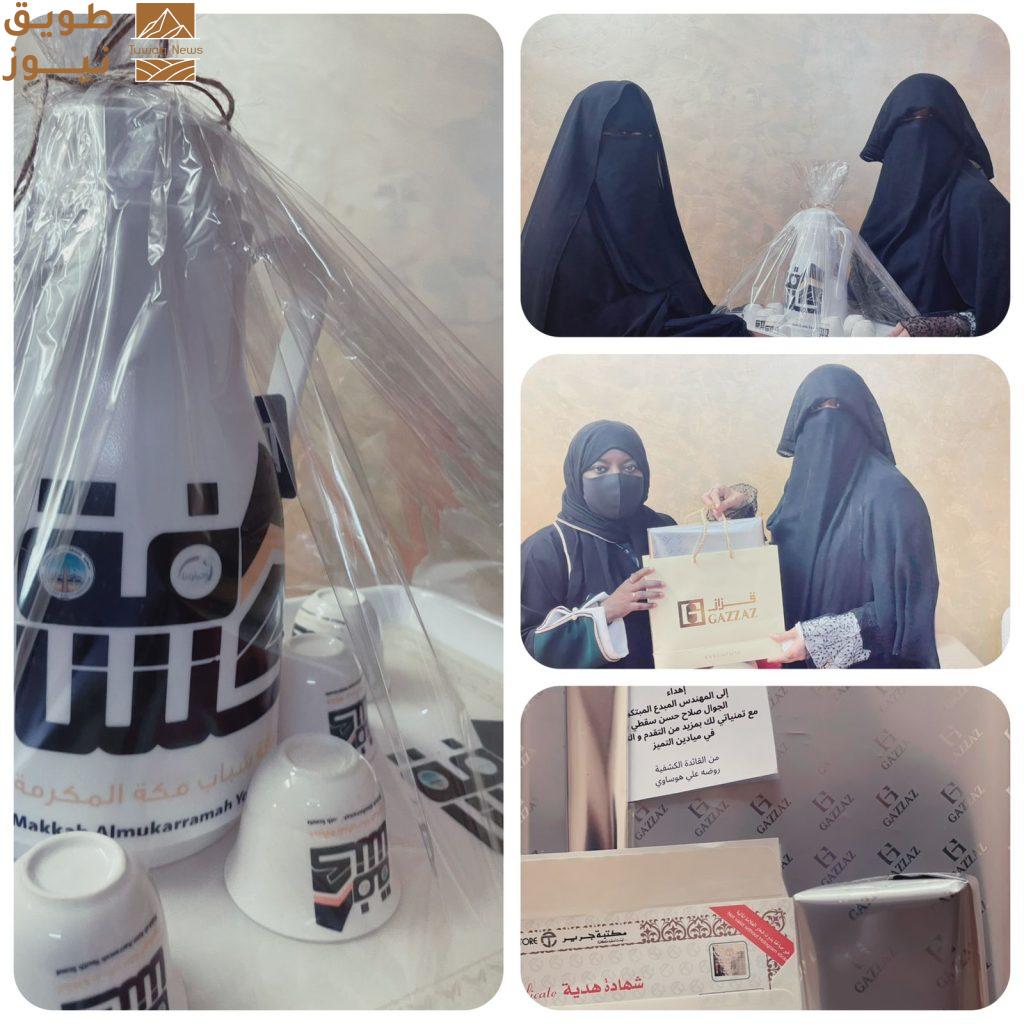 كما تم تكريم عماته وخالاته واكثر من 50 سيدة من السيدات والاعلاميات والتربويات وأمهات الكشافين من فرق الأشبال والفتيان والمتقدم والجوالة ، وهن الدكتورة مشاعل المدني والدكتورة كلثوم خميس ال ثاني و القائدة الكشفية التربوية روضه علي هوساوي والقائدة جواهر يوسف الهوساوي المديرالتنفيذي للقسم النسائي بكشافة شباب مكة المكرمة والقائدة الكشفية التربوية وداد علي هوساوي والدليله انهار علي فلاتة.ثم تناول الجميع طعام العشاء في جو يسوده الفرح والسرور والامتنان، وشاركت الحاضرات وسيدات المجتمع والمال والاعمال في تقطيع التورتة التي أعدت بهذه المناسبة.