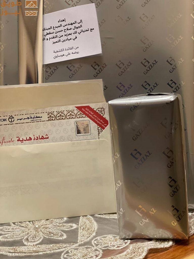 وشهد الحفل تكريم الأستاذة رمزية احمد ابو الجدال والدة المحتفى به بالعديد من الدروع والهدايا والجوائز والعطور الشرقية والغربية، وبعض الأجهزة الكهربائية والجوالات والتحف.