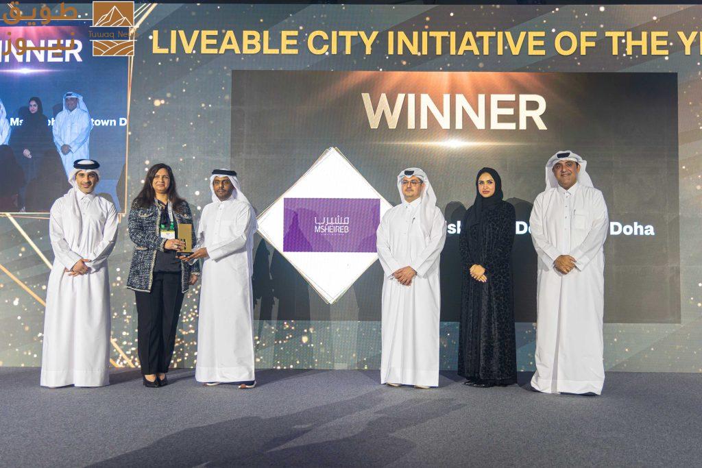 وتقديراً للجهود المبذولة في مجال الاستدامة والتأثير المجتمعي، تم منح جائزة مبادرة المدينة الصالحة للعيش لهذا العام لشركة مشيرب العقارية عن مشروع مشيرب قلب الدوحة، وهو أول مشروع لتجديد وسط المدينة بشكل مستدام في العالم.