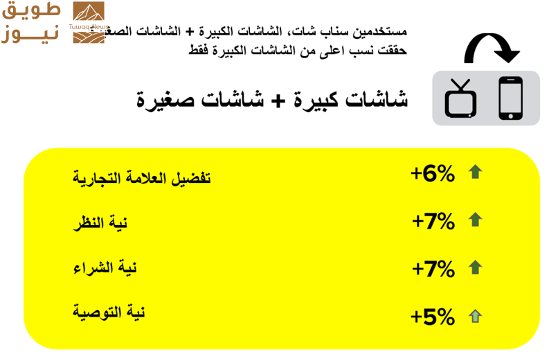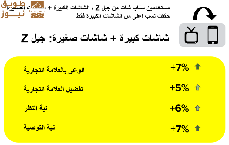 أثبت استخدام كل من الشاشة الكبيرة وسناب شات التميز والتأثير الكبير بين مستهلكي الجيل Z في المملكة، مما يوضح القدرة الفريدة لسناب شات في التأثير على الآراء. كما أفاد مستهلكو الجيل Z بزيادة بنسبة +6% في الوعي بالعلامة التجارية مقارنةً بالشاشة الكبيرة فقط.