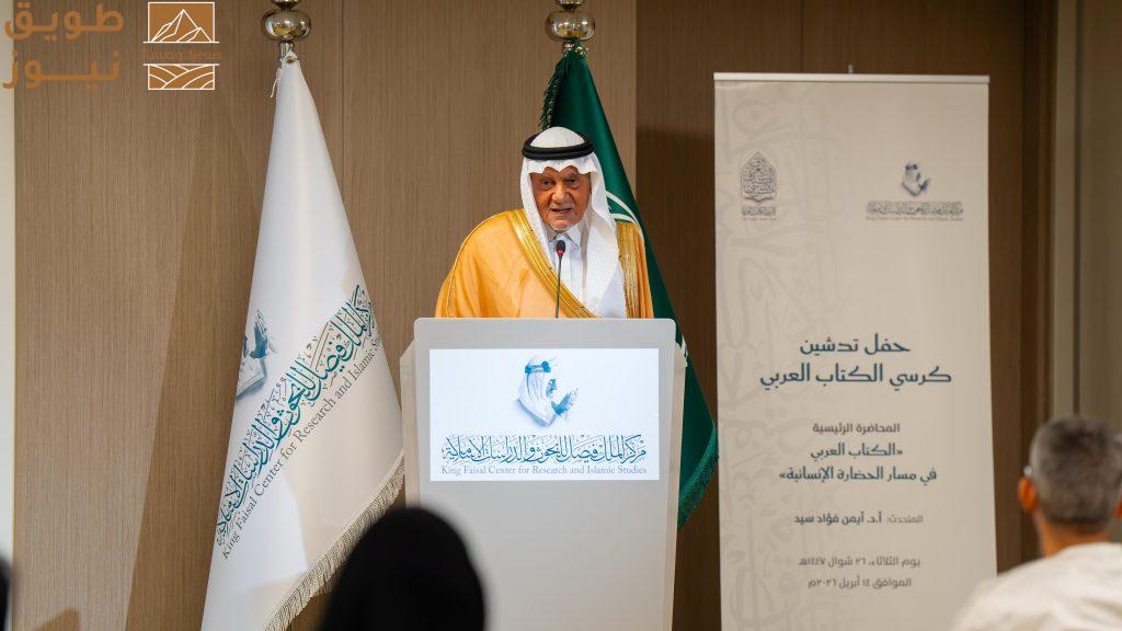 أكد الأمير تركي الفيصل أن الكتاب العربي شكّل عبر التاريخ وعاءً للمعرفة وركيزة أساسية في حفظ الحضارة العربية والإسلامية، مشيرًا إلى أن الكلمة كانت أساس بناء الحضارة منذ الأمر الإلهي «اقرأ».